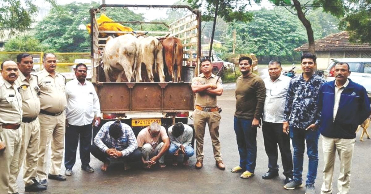 शाजापुर से पिकअप में भरकर ला रहे थे गोवंश पुलिस ने इंदौर के तीन तस्करों को धरदबोचा