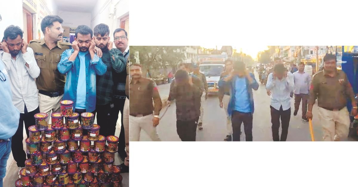 एक्शन: सडक़ पर बेच रहे थे चायना डोर कान पकडक़र पुलिस ने निकाला जुलूस