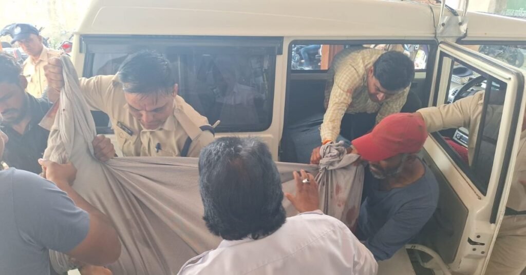 गुस्साई भीड़ ने घटना स्थल पर पुलिस वाहन के कांच फोड़ दिए