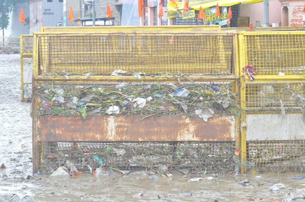 शिप्रा नदी में प्रतिदिन हजारों की संख्या में देश भर के श्रद्धालु स्नान, पूजन अर्चन के लिये पहुंचते हैं। तीन दिनों से नदी में बाढ़ आने की वजह से नदी किनारे के मंदिर, घाट जलमग्न हो गये थे। सुबह नदी में पानी का लेवल कम होने लगा तो घाटों पर रखे बैरिकेड्स में फंसा कचरा और घाटों पर कीचड़ मिट्टी दिखने लगा।
