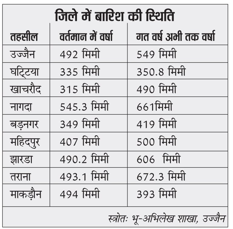 गत वर्ष की तुलना में उज्जैन जिले में बारिश अब तक 3 इंच कम