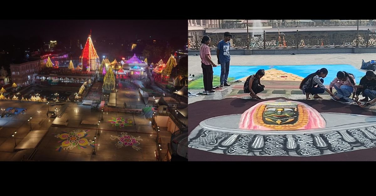 अक्षरविश्व न्यूज उज्जैन। इस बार दीपावली पर श्री महाकालेश्वर मंदिर परिसर में एक भव्य और अद्वितीय कलात्मक पहल की जा रही है। मंदिर परिसर के लगभग 50 हजार वर्ग फीट में आकर्षक रंगोली बनाई गई है। मंदिर मेें कल सुबह रूप चौदस के मौके पर पुजारी परिवार की महिलाएं भगवान महाकाल को अभ्यंग स्नान कराएंगी। यह साल में सिर्फ एक दिन रूप चौदस पर होता है। शाम को दीपोत्सव मनेगा।