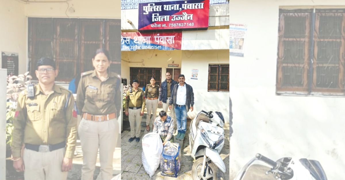 अक्षरविश्व न्यूज उज्जैन। एक्टिवा पर श्री सिंथेटिक्स के जंगल में शराब सप्ताय करने आए तस्कर को पंवासा पुलिस ने धरदबोचा। उसके कब्जे से देशी प्लेन शराब के 350 क्वार्टर और एक्टिवा जब्त की गई है।