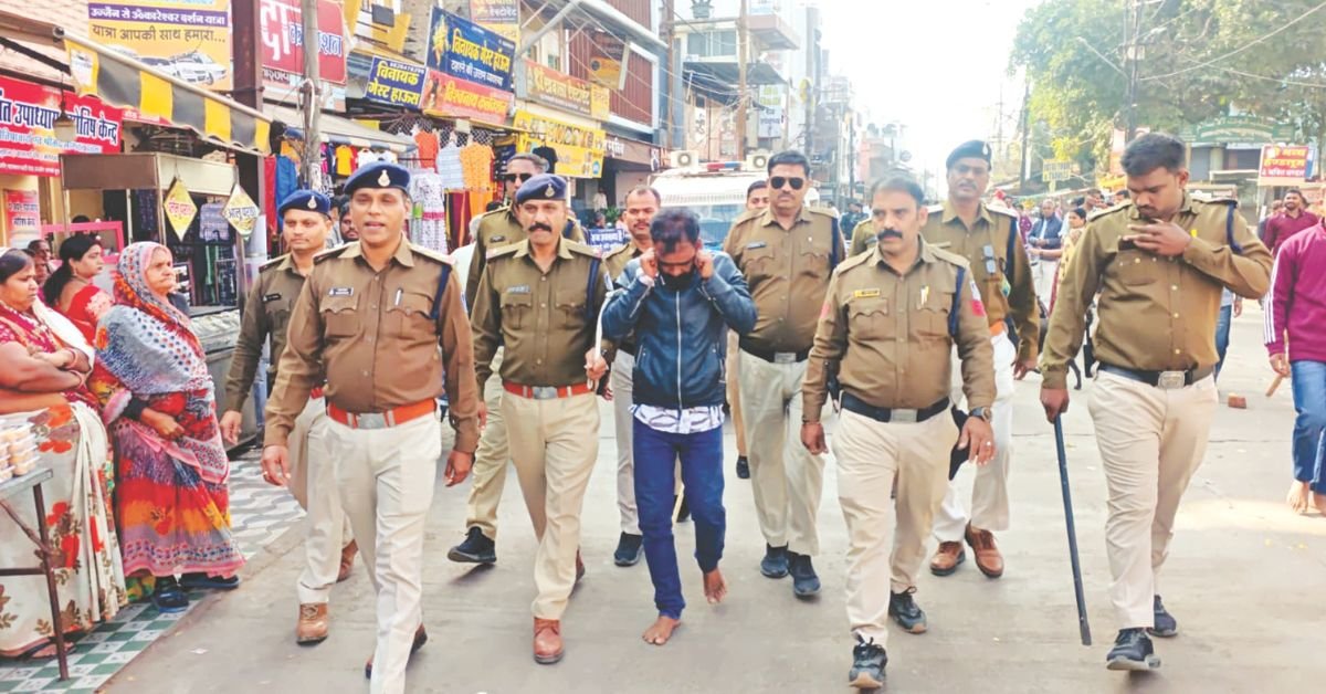 चाकू मारने वाला बदमाश धराया, पुलिस ने कान पकड़कर क्षेत्र में घुमाया
