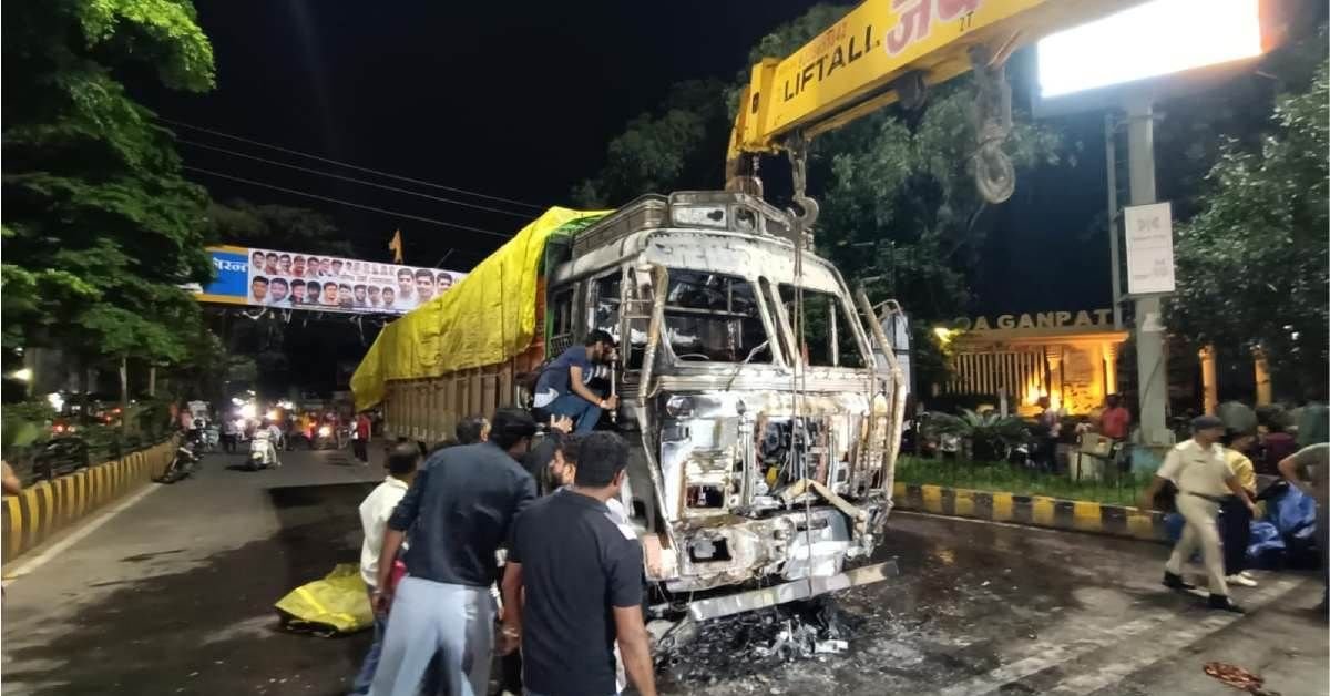 आग में लिपटे शख्स को ट्रक के नीचे से निकाला हादसे के दौरान बाइक सवार कैलाशचंद्र जोशी ट्रक के नीचे फंस गए थे। बाइक के रगड़ने से चिंगारी निकली और दोनों गाड़ियों ने आग पकड़ ली। जोशी के कपड़ों में भी आग लग गई। जलती हालत में जोशी को लोगों ने बाहर निकाला लेकिन उन्हें बचाया नहीं जा सका।