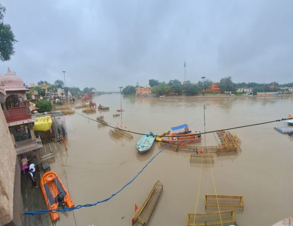 मंगलवार सुबह रामघाट पर कई मंदिर डूब की स्थिति में आ गए। हालांकि इस दौरान घाट पर जान जोखिम में डालकर कई लोग डुबकी लगाते दिखे। एसडीईआरएफ और होमगार्ड सहित पुलिस की टीम को घाटों पर सुरक्षा के लिए तैनात किया गया है। बीते 24 घंटे में मंगलवार सुबह ८.३० बजे तक ३५.६ मिमी (डेढ़ इंच) वर्षा दर्ज की गई।