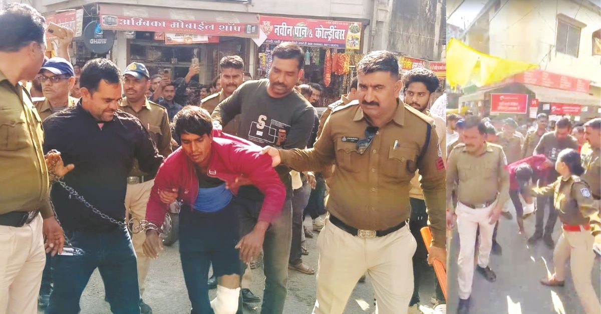 मासूम की हत्या के आरोपी का निकाला जुलूस, भागने की कोशिश में गिरकर चोटिल हुआ